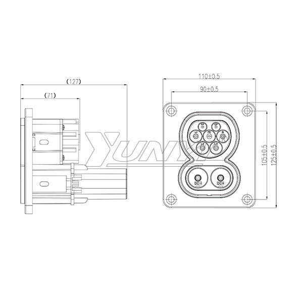 | 適用標(biāo)準(zhǔn):IEC 62196 額定電壓 :·DC:1000V ·AC:250V/440V 額定電流:·DC:80A/125A/150A/200A ·AC:16A/32A 溫度:-30℃~ +60℃ 防護(hù)等級(jí):蓋上防護(hù)蓋:IP54 阻燃等級(jí):UL94-V0 絕緣電阻:≥1000MΩ 機(jī)械壽命:≥10000次 端子溫升:<50K 環(huán)保要求:符合Rosh |